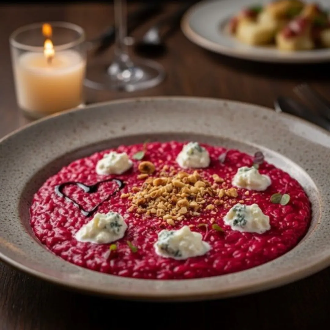 Si inizia con la delicatezza del carpaccio, elegante e leggero, si prosegue con un risotto dal colore intenso e avvolgente, dove la dolcezza della barbabietola incontra le bollicine del Prosecco.